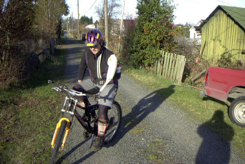 Although I'm not a double arm amputee, I've included the following pictures of myself (Victor) to provide an example of double arm amputee riding technique and modifications.
